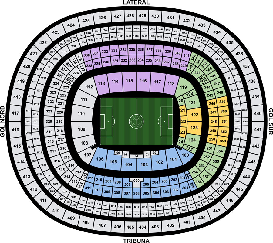 - Supplement of €235 for tickets in Lateral Longside in purple color as per below map. - Supplement of €295 for tickets in Tribuna Longside in blue color as per below map.
